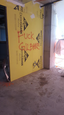 hi everyone! I am pitching in and helping with about 3 projects at the moment. One job is in Queens and the other two jobs are in Manhattan. One job has a growing troubled relationship between the trades and the general contractor on the job. At first, I thought it was just our shop that was at odds. Now I see it is a growing distain for the GC amongst all of the trades on the job. They are trying to say that we are holding up progress. Meanwhile, the general contractor should be coordinating work with the trades. We can’t work in the same space as the floor guy when he is gluing his floor down. Oftentimes, our field guys are coordinating with the floor guy. It has been rather frustrating that jobsite. There are people screaming and shouting so that they can push through and get their way. It has definitely been an eye opener for me. My project in Queens has been decently smooth as a construction job can be. I am walking that job weekly to document the progress and see how we are being held up by other trades. The job has been passed to quite a few people over the past 2 years. It is supposedto be wrapped up by summer time. That is our goal and this has been an amazing learning curve for me. I have not gotten into a shouting match yet with anyone. My goal is to avoid that and try to get the job done. I have a great crew of project managers to learn about the PM process along the way. I have been walking a few jobs with our in house inspector consultant to learn more about the potential issues that can come up as violations. Then I have walked with the inspector to see if our cleaned up violations, previously fixed, help us pass our inspection with flying colors. There are alot of items to keep an eye on and make sure they are done correctly! You can delay the job and be at fault if we fail inspections. I learned that there are no rough in inspections in NYC. They just have final inspections. In Westchester and Fairfield territories, we have to get an inspection before the walls are closed up. They want to make sure all holes in the deck and ceiling where a cable or pipe enters is firestopped (sealed up). Walking these inspections makes me feel the need to study the NYC electrical code and earn my master’s electrical license in New York City. I then have to shelf it as long as I work for a shop. It is a good idea so I can either open my own women owned W/MBE business. I can hold a license for a NYC shop if I get laid off from this shop. I can even start up a minority contractor business with my son Tom. He is currently scheduled to enter the apprentice electrician program this fall. It takes about 5.5 years to finish his apprenticeship. He needs about a good ten years worth of work experience before I would open a business with him. Holding a NYC license is a key to success with a means of having a way to work. One of the things I have learned about the business is that as a large shop, the largest electrical contractor in NYC, is that we must award 20-30% of our work to women/minority/disabled supply houses and electrical subcontractors. There is money to be made as a woman owned electrical shop. However, you need deep pockets (investor) to fund material purchases and pay for weekly labor and benefits. It is definitely a goal of mine within the next ten years to get that NYC electrical license. I figured I would share what I discovered while walking the job. I can only imagine the courage needed to spray paint that on the wall and not get pinched by a general contractor employee! This area is near the former temporary elevator used in the beginning of the job to carry labor and materials. We now use a covered permanent elevator to access the jobsite. Here is the work of a disgruntled construction worker taken on the 53rd floor:
