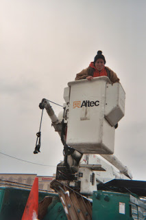 Fun fact- bucket truck work is my absolute favorite work that I love to do as an electrician. I just so happen to have the receipts (my photos) of my work in a bucket truck. 😛 I wish I had taken more pictures on the job over the years. I am grateful for the ones that I do have. I could be working in -40 or 90 degree weather and I still love it!! I almost became a lineman for the local utility company if I didn’t get into the union. Instead, I became an inside wire-woman. I am happiest on a jobsite interacting with the crew no matter the temperature, weather, or conditions. I worked for this contractor (in the photos) for almost five years. It was all the hardest work as an electrician. I used to throw 4″ rigid on my shoulder like it was nothing. My boss and coworkers thought of me as “one of the guys”. I even tried to hide my pregnancy while in a trench back in 2004-2005. Those stories will be told in Construction Tales: Volume 2: My Illuminated Path Continues…