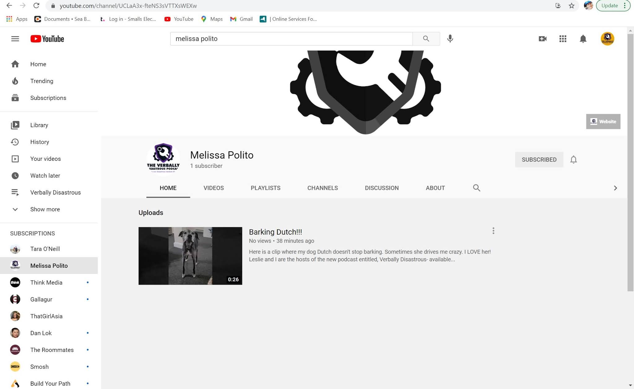 I just helped my co-host Melissa launch her YouTube channel!! I made sure to be her very first subscriber and she is now connected to the Verbally Disastrous channel. Believe it or not, I am the more tech savvy person of the duo. She has the Verbally Disastrous logo in white so there is a distinction between the two co-hosts. My logo is yellow and where the podcast episodes will be launched on the Verbally Disastrous YouTube & Spotify profiles. Here is the screenshot of her page: