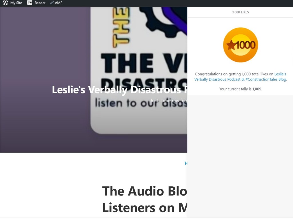 I wanted to extend some quick gratitude for achieving another milestone here on this blog! I thank each and every person who has taken time out of their day to like my content. As a result, the #ConstructionTales blog and website has achieved 1,000 Likes since I started it back in January of 2021. Therefore, I am relatively new on this platform. For anyone reading this for the first time, I am a female journeywoman electrician by trade from New York City. I went back to school to earn my MBA, became a project manager, studied and passed the ASP, CSP, NYC DOB Site Safety Manager exam, and now a Safety Manager. I wrote a book about my apprenticeship during the 1990’s. I have the #VerballyDisastrous podcast project, with my bestiee Melissa and special guests, where we discuss topics through the lens of two independent career women with truck driver mouths. I would be nowhere without people, from all over the world, who come together as a reading, listening, and watching audience to check out the content. I am saying THANK YOU!!! As always, I thank you for taking the time to stop by my blog and website. You have many options and I am honored that you have chosen my content. Thanks for stopping by, if guilty, on Anchor, Radio Public, Breaker, Google Podcasts, Pocket Casts, and Spotify. Much thanks to anyone, also if guilty, who picked up my book #ConstructionTales either on Amazon, Barnes & Noble, iTunes, and Audible. I wish you a peaceful Sunday afternoon with your friends and/or family!!