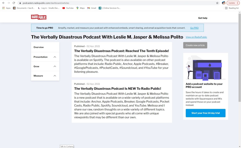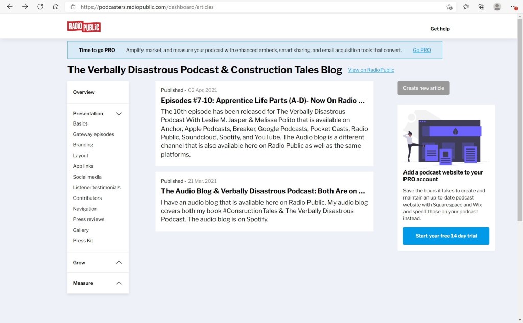 I have written some articles on the Radio Public podcast platform. The articles were written on both the WordPress audio blog and the Verbally Disastrous podcast. Here they are in case you are a member of the Radio Public audience: