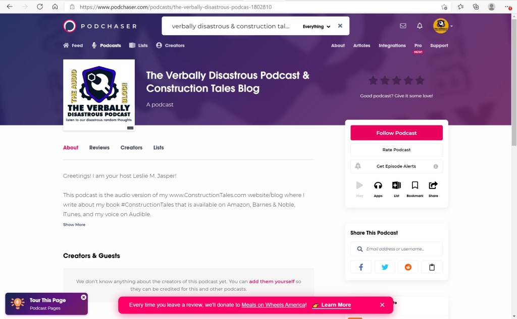 Podchaser Link below for my Podchaser profile- The Verbally Disastrous & Construction Tales Audio Blog: