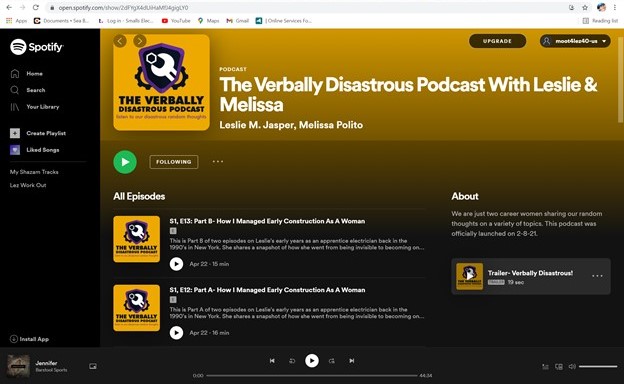 -The Audio Blog: Verbally Disastrous Podcast & Construction Tales Blog. Now available on: Apple Podcasts, Anchor, Breaker, Deezer, Google Podcasts, Pocket Casts, Radio Public, and Spotify. I will announce more platforms very soon.