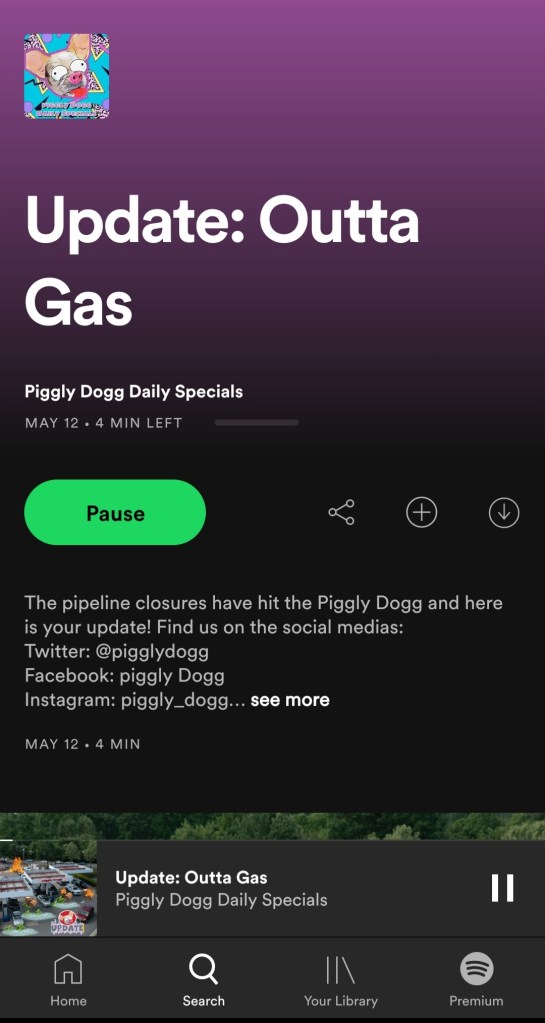 NEXT ON DECK: I already started listening to “Piggly Dogg” on Spotify while trying to run back home and dodge a rainstorm last night. More episodes to sample and review very soon:
